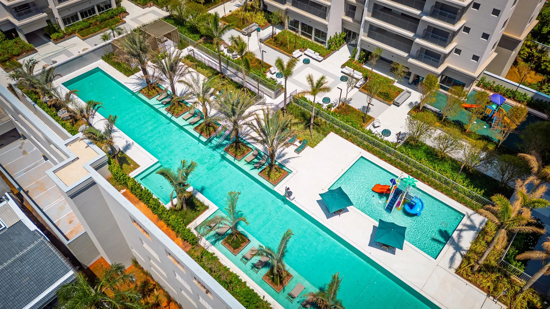 • Área de lazer completa com piscinas adulto e infantil em clima de resort